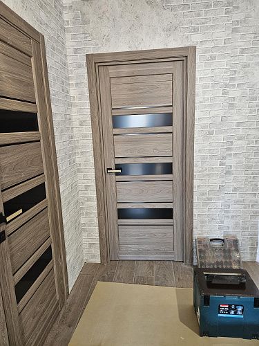 Дверь ПО Queen X3 Дуб тортора черное стекло из Экошпона COVERFLEX (Двери Нева) в с установкой и доставкой