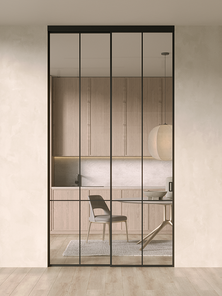 Купить дверь MinoLite-S 2 черная стекло прозрачное в с установкой и доставкой